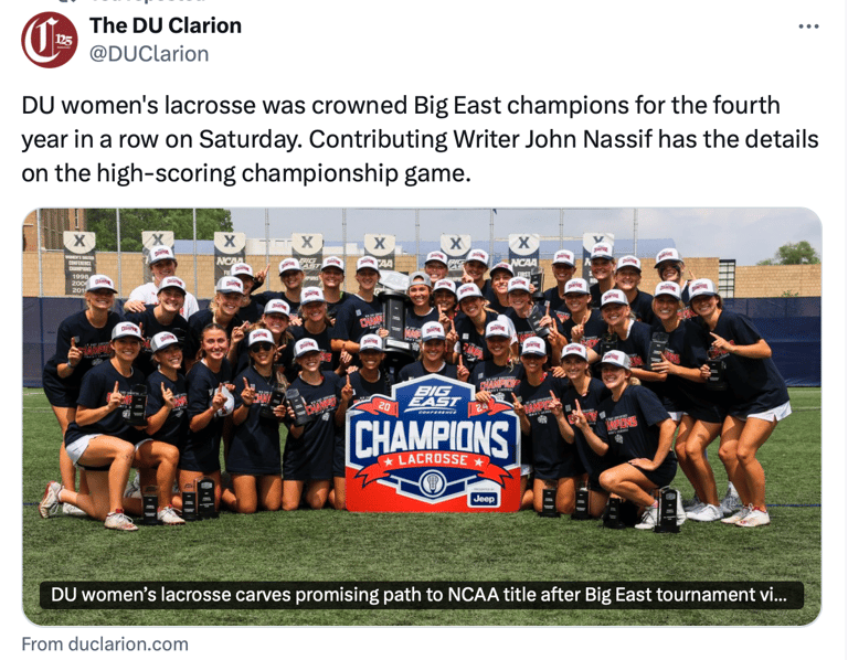 At the DU Clarion, crafting compelling feature stories, season recaps, game day recaps, music, and news. It's incredible to hear the stories of everyone